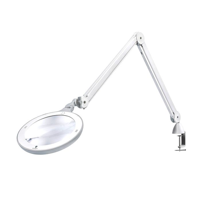 The Omega 7 Magnifier is a modern, ergonomically designed magnifying lamp. It has a large 17.5cm (7") diameter, 3 diopter (1.75 x) lightweight acrylic lens and high power LED's with 2 brightness levels for clear viewing. The internal spring arm allows accurate positioning.