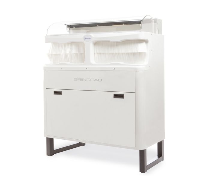 Clean and quiet grinding from Namrol with the NEW Grindmaster Cab.The curved glass protector along with the LED lighting gives you a panoramic view of the working area and the 1 HP motor allows you to grind and polish with ease. Plus with no need for a noisy extraction motor it's so quiet. At the end of the day brush all the grinding dust from the cabinet and simply empty the debris tray.