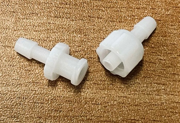 SPHYG CONNECTOR FITTING MALE / FEMALE SET (WHITE) - 1 PAIR & INSTRUCTIONS - NEW STYLE to suit HOKANSON TOE CUFF -TEMPORARILY OUT OF STOCK