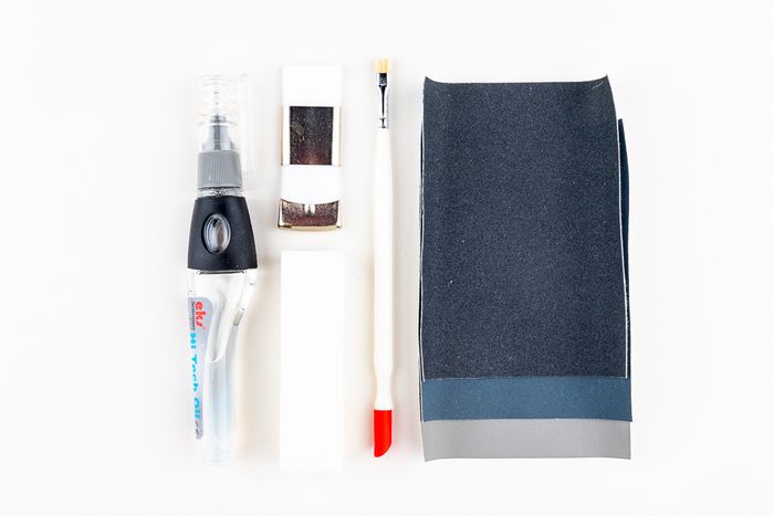 The kits consists of: 1 x EKS Hi Tech oil pen, 1 x polishing block, 3 different grades of polishing cloths, 2 x angle & surface brush.