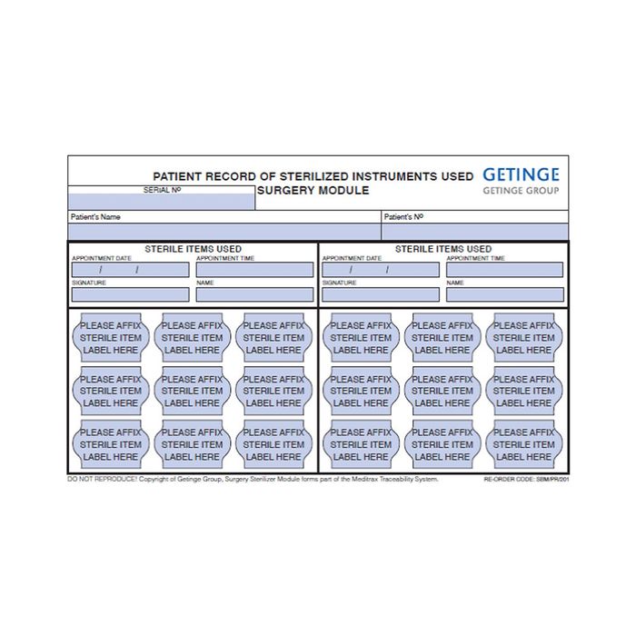 Used to provide tracking of all items sterilised by batch through to the patient. This simple, economical, highly effective system ensures all documentation is recorded pertinent to current AS/NZS 4815 standards.